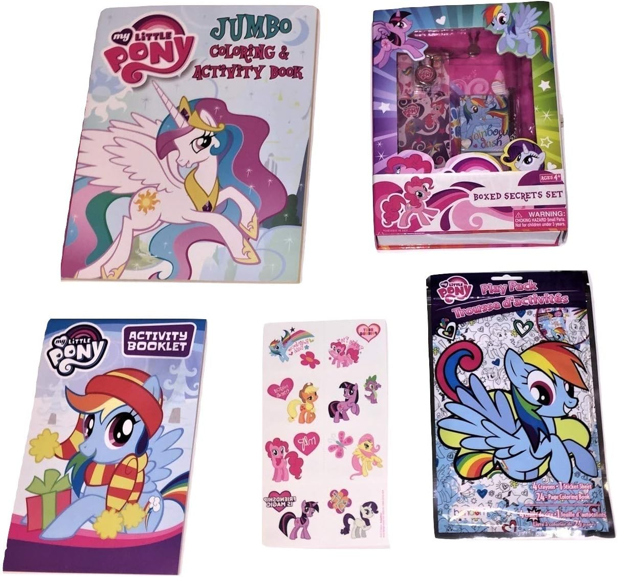 Amazon Com My Little Pony Bundle Of 5 Activity Gift Set Items Friendship Is Magic Jumbo Coloring And Activity Book Christmas Themed Activity Booklet Boxed Secrets Play Pack Tattoos Office Products